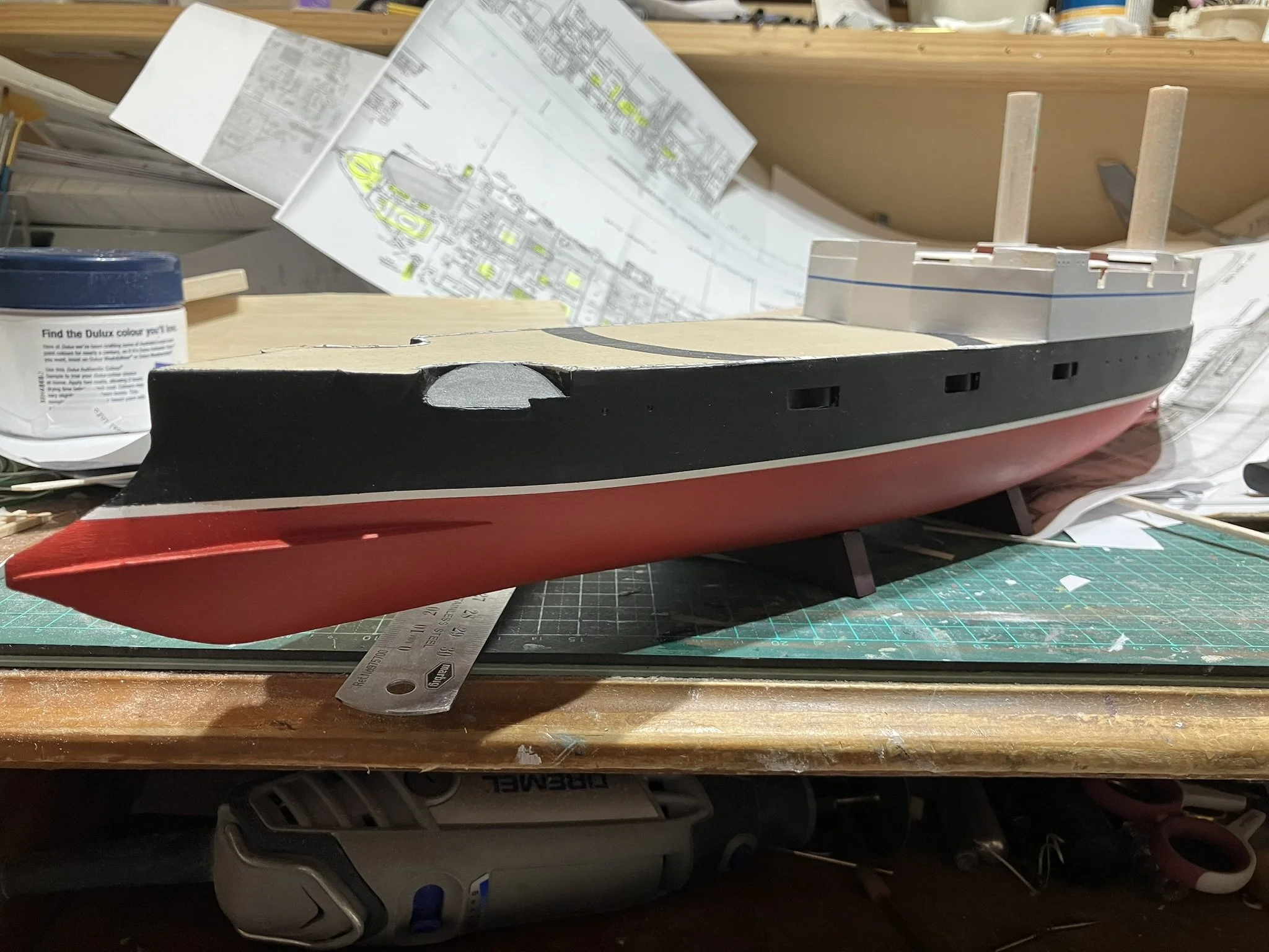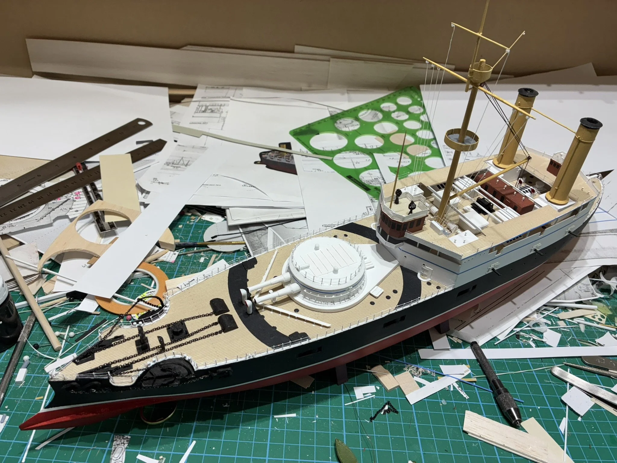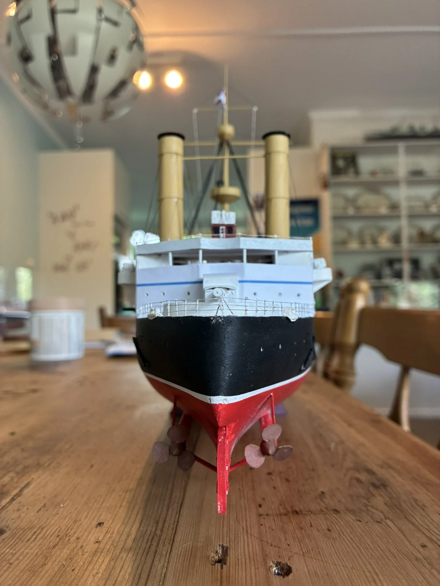 Thunderchild from H.G Wells’ “War of the World”. I built this for Drachinefel to my common scale 0f 1/192. The model was based on drawings that Drachinefel provided as a starting point. I then used the plans that I have of HMS Victoria as the main design for Thunderchild. I must say that building a “What if” is more challenging than an actual real life ship. I did like her final appearance and Drachinefel was very happy with my rendering. Getting it to the UK is another story!! An exercise in “thinking outside the box”!