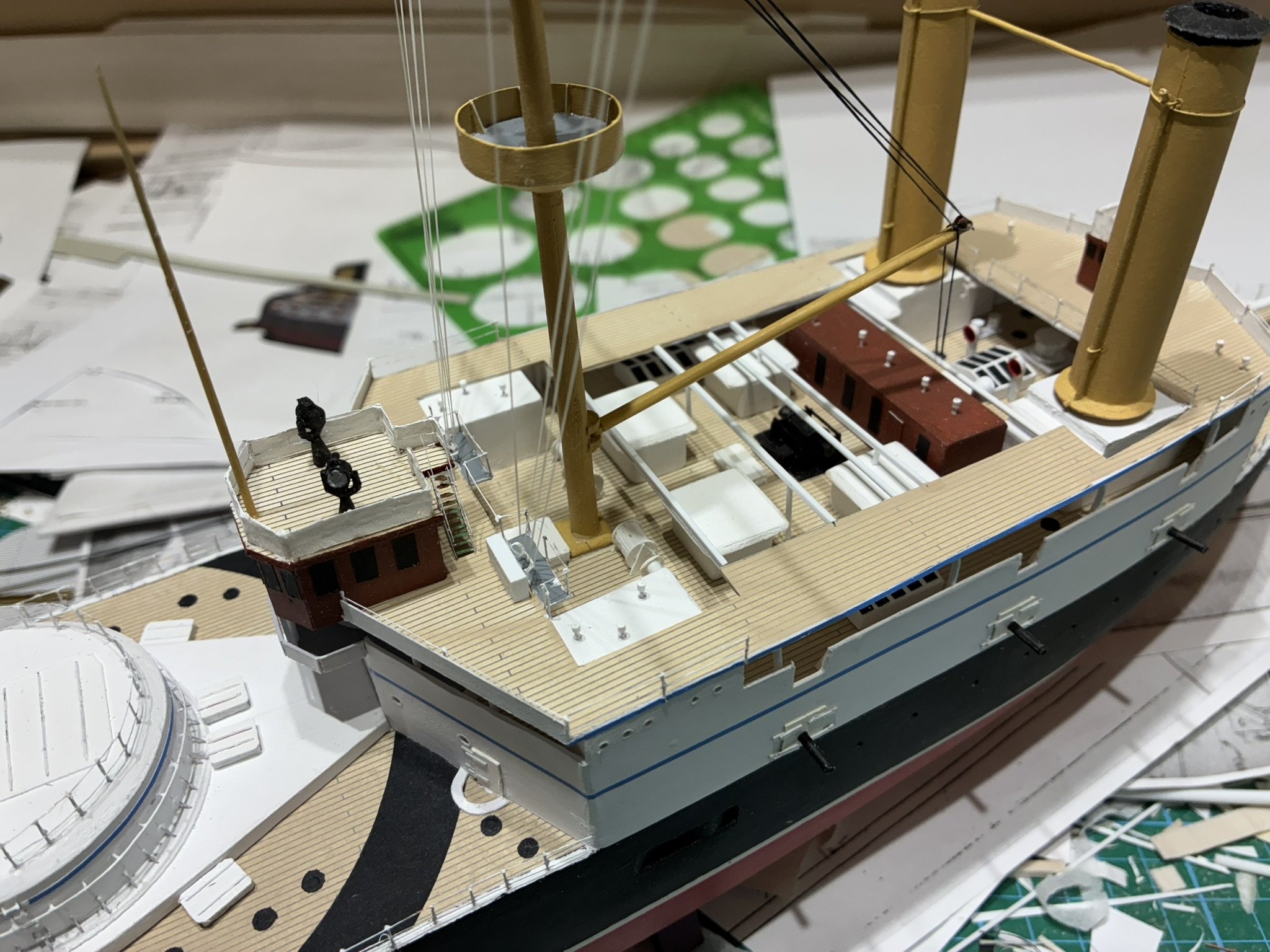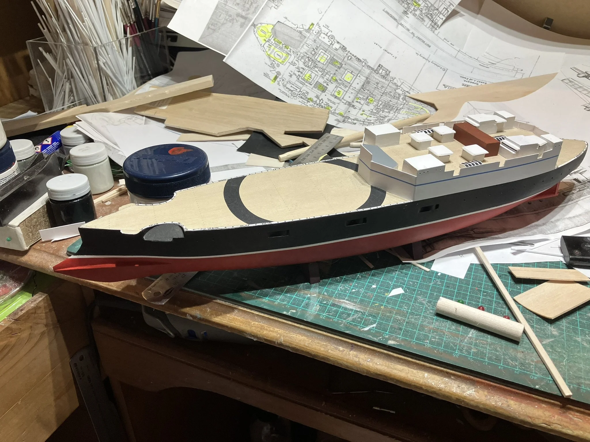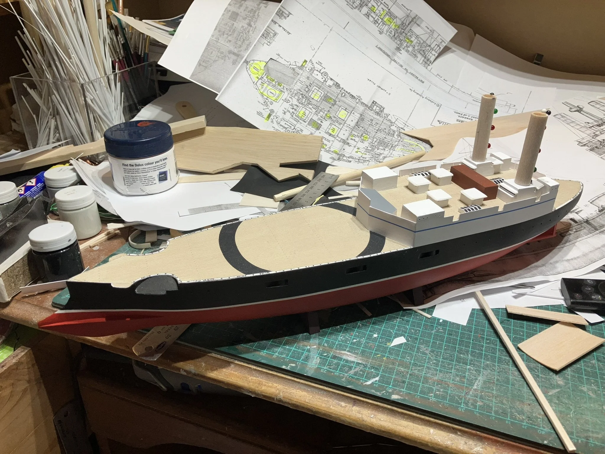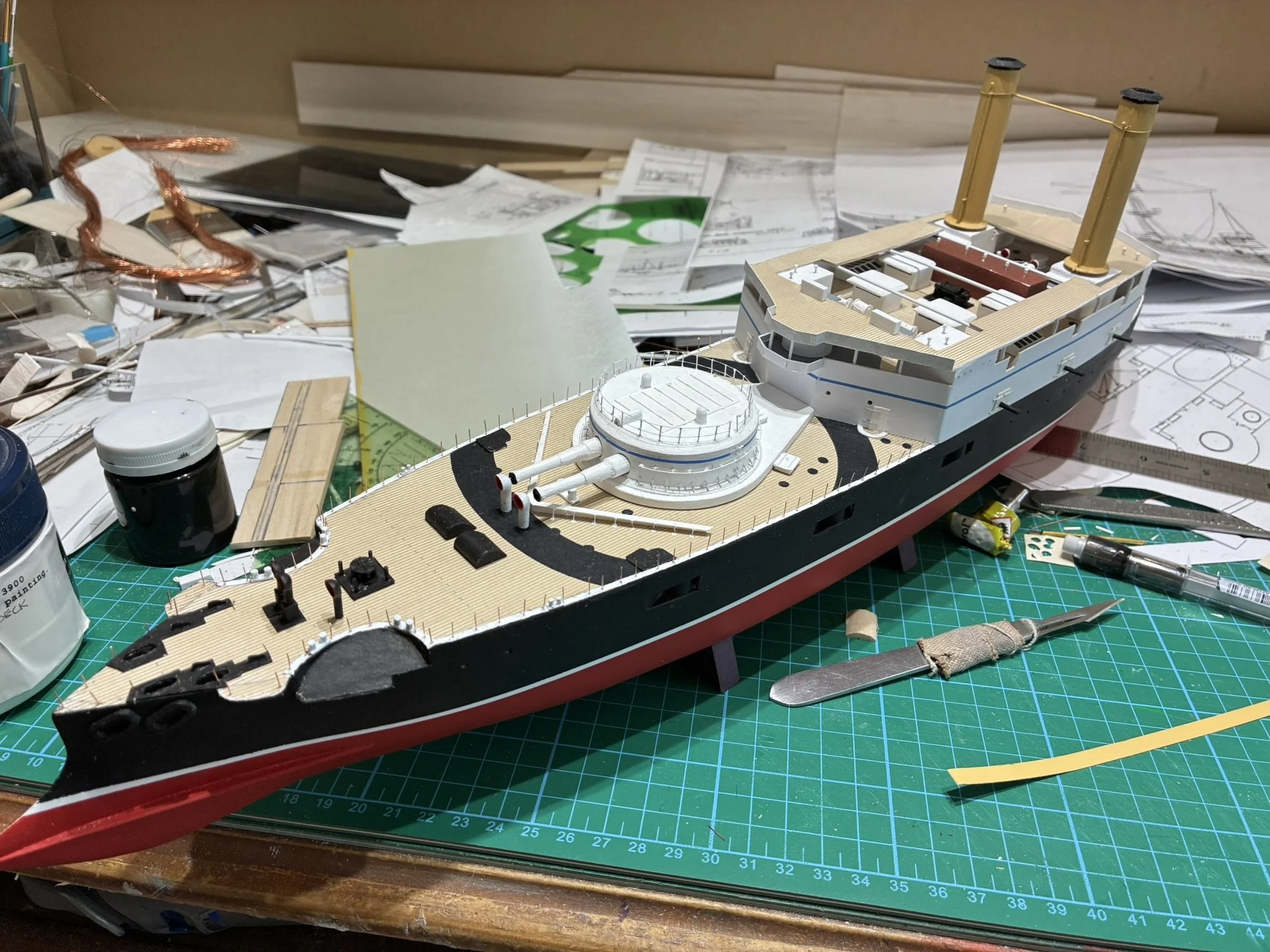 Thunderchild from H.G Wells’ “War of the World”. I built this for Drachinefel to my common scale 0f 1/192. The model was based on drawings that Drachinefel provided as a starting point. I then used the plans that I have of HMS Victoria as the main design for Thunderchild. I must say that building a “What if” is more challenging than an actual real life ship. I did like her final appearance and Drachinefel was very happy with my rendering. Getting it to the UK is another story!! An exercise in “thinking outside the box”!